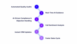AI enables real-time call monitoring for quality control. Supervisors analyze live calls and provide instant feedback. AI also flags compliance issues, ensuring legal and high-quality interactions.