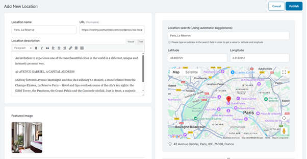 Finally, click the Preview button in the Publish section to see how the location will look on your site before it is officially published.